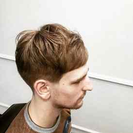 Современные модели мужских стрижек для коротких волос и волос средней длины (до 10 см). Виски и затылок - под машинку, верх - под машинку или ножницами.